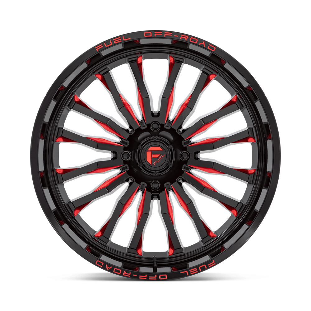 Looking for a wheel that combines style, performance, and durability? Look no further than the 24x7 Fuel D822 Arc Gloss Black Milled Red Wheel for the 4/156 bolt pattern. With its sleek 16-spoke design in a deep gloss black finish and striking milled red accents, this wheel is sure to turn heads wherever you go. Not only does it look great, but it is also engineered for the bold, featuring a sleek center cap with the iconic Fuel logo for added style and exclusivity.