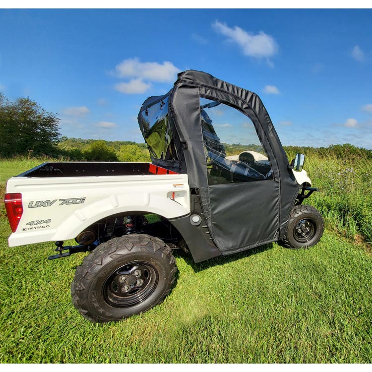 Ranch work doesn't stop for weather. Upgrade your Kymco UXV 700 with 3 Star Mossey Oak Camo Soft Full Doors and Zip Open Rear Window for protection and comfort on those long days.