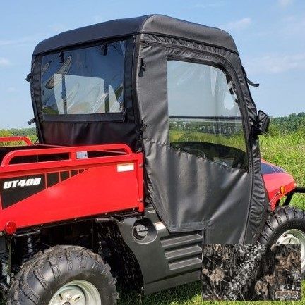 Prepare your Coleman Outfitter or Hisun HS 400 for the outdoors with the 3 Star Camo Soft Full Doors, Rear Window, and Top. Built for hunting, work, and rugged terrain, this enclosure provides coverage from wind, rain, and debris while blending seamlessly into the environment with its camo design. Whether you're navigating wooded trails or handling tough tasks, this setup delivers durability and comfort.