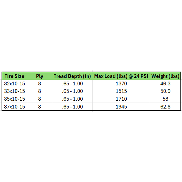 - Deep .65 inch - 1.0 inch inter-locking tread blocks and optimal voids