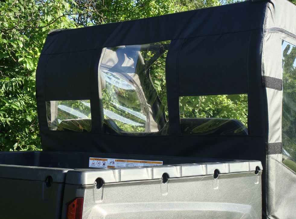 The door windows and rear window are made of durable Aqua-View Smoked vinyl allowing for an uninhibited view and total clarity. The doors open and close using YKK zippers manufactured using a state-of-the art injection technique and are attached to the strongest cord and tape made. The YKK zippers offer crosswise strength that's unmatched in the industry. 3 Star also uses marine sewing thread made from selected high tenacity, heat resistant, continuous multifilament polyester yarns. Along with the highest quality materials, all 3 Star enclosures are hand measured and handcrafted to ensure a precise fit. The cab's doors roll away to allow for an open cab environment when needed. Not only is this combo versatile, it also provides shelter from rain, wind, sun and snow. The door/rear window combo comes complete with self-adhesive Velcro, installation and care instructions. Everything is included in the DRW kit for easy installation.