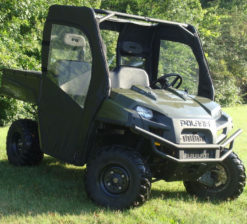 These doors and rear window will make your life a whole lot more comfortable when the weather dips down and you need to get in your Polaris Ranger and go. Designed for use with the factory windshield and hard-top, the 3 Star door and rear window combo uses the finest professional grade marine fabric made of 100% polyester with stay-true long lasting colors with stabilized fit of less than 1% stretch or shrinkage. The marine fabric is water repellent, tear resistant, puncture resistant, mildew and UV resistant.