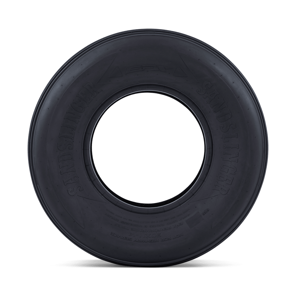 When it comes to performance, the Sandslinger lineup is thoughtfully split to handle steering and propulsion. All the 14-inch wide tires are rear paddles, with a hefty 25mm tread depth to cut through deep sand and give you quick, powerful acceleration. The front tires are a bit different, with a 10mm tread depth that offers just enough bite for precise steering without sacrificing floatation. Whether you're carving a ridge or launching off a crest, this awesome sand tire is built to give your machine the agility and power you need to conquer the dunes with confidence.