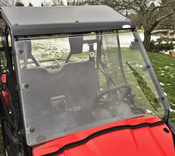 Are you tired of dodging the bugs while doing chores around the farm or hitting the trails hard? It may be time for a full windshield for your Honda Pioneer 500. Not only will the EMP Hard Coated Full Front Windshield protect you from the elements, it's DOT approved. So, if you're looking to make your UTV street legal, this will work great for a front windshield.