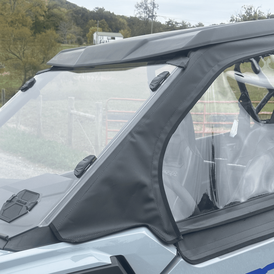 The Soft Upper Doors w/ Zippers by Falcon Ridge brings rugged protection and practical versatility to your Polaris RZR PRO XP 4. Built with professional marine-grade 11 oz waterproof polyester canvas, these soft upper doors are engineered to withstand punctures, tears, abrasion, and harsh trail conditions, helping keep wind, rain, dust, and debris out of the cab for a more comfortable ride. The durable 30 mil tinted Aqua-View vinyl windows offer excellent visibility and are designed to resist cold-weather cracking, making this enclosure useful in a wide range of climates and seasons.