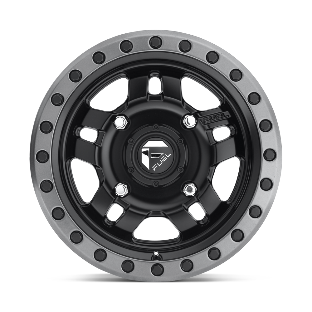 Upgrade your UTV with the Fuel D557 Anza Matte Black Wheel - 4/156, designed to deliver a perfect mix of rugged strength and aggressive styling. Its thickset 5-spoke design gives your machine a bold, planted look, while the matte black finish paired with a gunmetal ring adds a clean, modern edge that stands out on any trail.