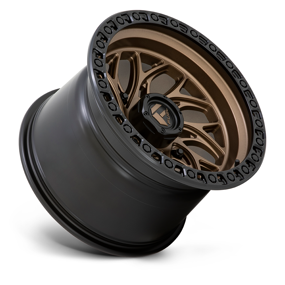 Introducing the Fuel D777 Runner Bronze Wheel! Get ready to hit the trails with this bold and adventurous addition to your UTV. Its expressive swept split-spoke design features a rugged simulated beadlock look, finished in a rich bronze with a striking black ring. Crafted with durable one-piece construction, this wheel is designed to deliver remarkable performance across various terrains.