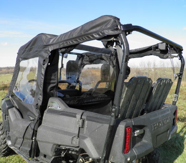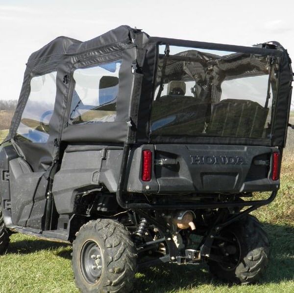 If you have a windshield and roof on your Honda Pioneer 700 4 already but are looking for a way to enclose your cab completely, you may take a look at the 3 Star Doors and Rear Window cab enclosure system. This combination will give you and your passengers that extra level of comfort that you need. With the various fabric colors, you can choose the one that best fits taste and the look of your rig.
