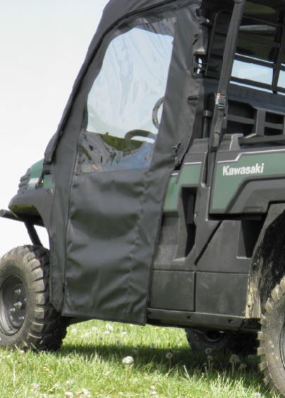 As the winter draws near and the temperatures outside drop below freezing you may find yourself wishing that you could protect yourself from chilly temperatures. That's where a cab enclosure system comes in to raise you cab temps and protect you from the unfriendly bone chilling cold. Luckily for you here at SideBySideStuff.com we offer cab enclosure systems like this 3 Star enclosure configuration for your Kawasaki Mule Pro-FX or Mule Pro-DX.