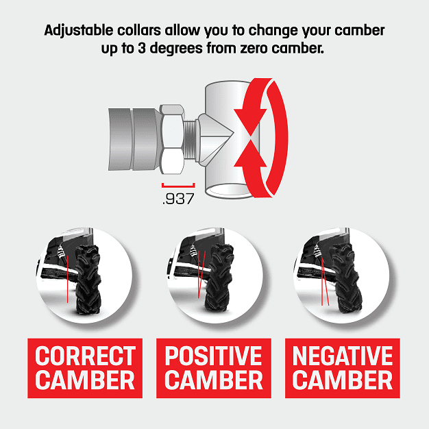 - Adjustable heat treated collars for camber adjustability with a 1 inch thread