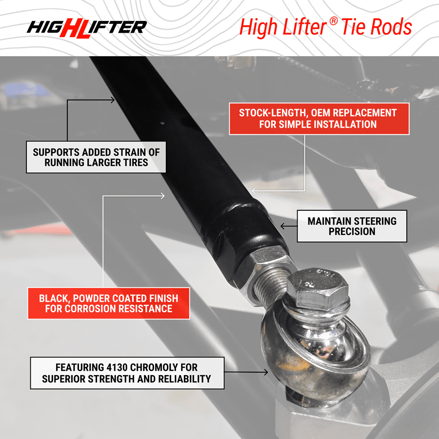 Beyond raw durability, the High Lifter Heavy Duty Tie Rods are built for long lasting performance and improved alignment stability. Precision machined threads and heavy-duty ball joints improve steering articulation while minimizing play, keeping your front end tracking true even under heavy loads and rough conditions. The tough design also helps extend the life of other steering components by reducing unnecessary stress and vibration transferred through the system. Easy to install as a direct replacement for the OEM units, these tie rods are a smart upgrade for riders looking to enhance reliability, handling precision, and overall trail performance on their Can Am Outlander.