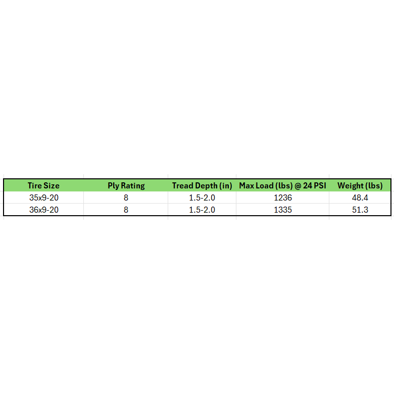 - 1.5-2 Inch Stepped Tread Depth: Maintains consistent traction and maximizes tire life across mixed terrain.
