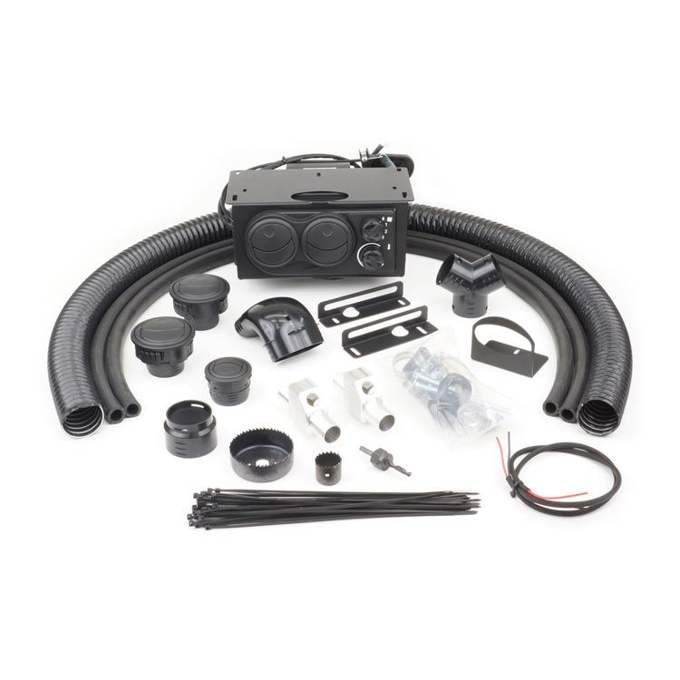Ice Crusher sends this side-by-side heater with everything you need for a clean installation. This is a compact kit, so modifications are minimal, but the payoff is huge. Using the custom Y connectors and mounting brackets, the UTV heating system mounts the center of the dash so you can blast warmth through the cab while you're getting your braaap on.
