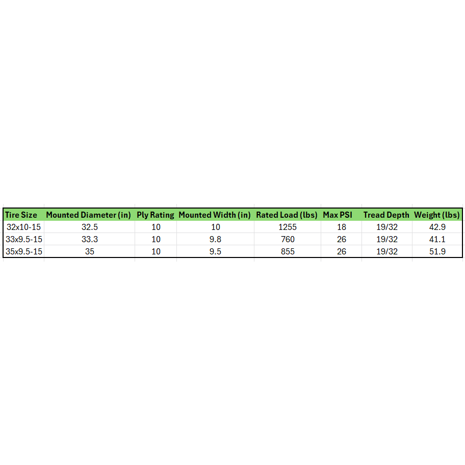 - 10-Ply Construction: Resists punctures and damage when the terrain gets nasty.