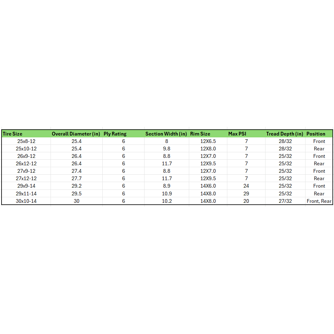 Great tires at a great price, I shopped all over the place, Everybody else wanted like over $200.00 each, I'm in West Virginia,Ordered very late on a Friday, Shipped to me the following Wednesday.Great customer service great place to by your sidexside items.