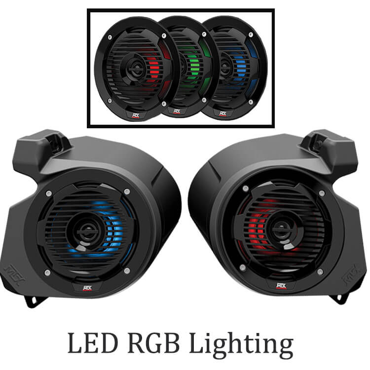 This Polaris RZR audio kit comes with two sets of front speakers and UTV tower speakers. They have LED RGB lighting that can be manipulated to meet your individual aesthetic demands. One set mounts to the roll cage while the other to the kick panels.We could sit here all day and give you the 411 on every piece of this off-road sound system but we'd be here all day. The Polaris RZR audio system has quality sound and durability, perfect for the way you get down.
