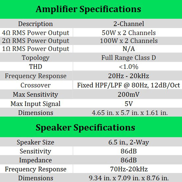 Universal Bluetooth Audio Package with Amplifier & 2 Roll Cage Speakers