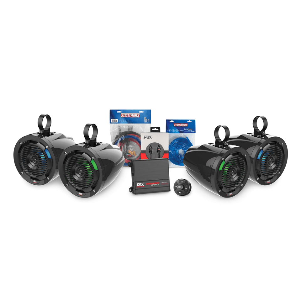 Your off-road adventure deserves more than just a powerful ride, it deserves an immersive audio experience. The MTX Universal Bluetooth Audio Package, featuring four rugged roll cage speakers and a high-performance amplifier, transforms your UTV with crisp, clear, and powerful sound wherever the trail takes you.What's in the box?