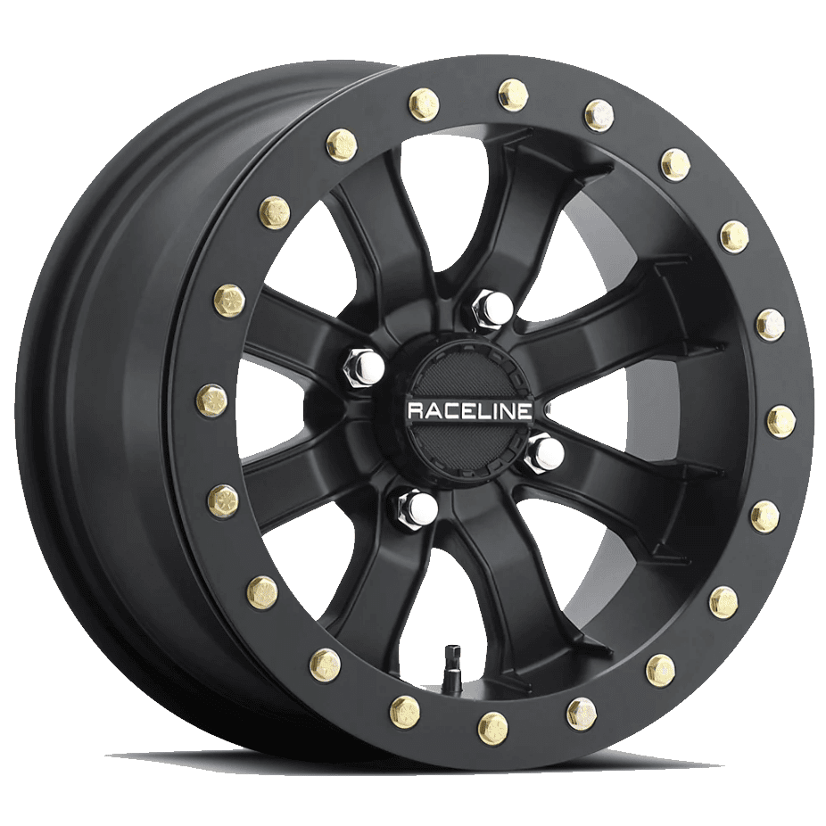 - Includes (1) wheel, (1) black 6061 beadlock ring, and (1) satin black snap-in cap with embossed chrome Raceline logo