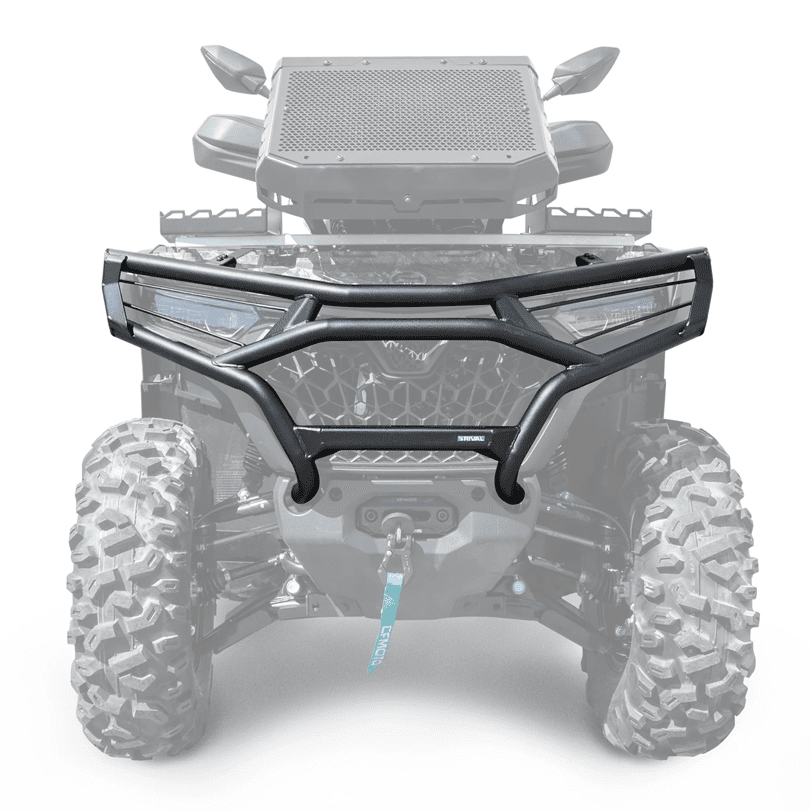 Arm your New Gen CF Moto CForce 800 or 1000 with the ultimate front-end bodyguard. The Rival Front Bumper is built from heavy-duty 1.5-inch steel tubing, providing a rugged shield that absorbs impacts from trail obstacles, stray branches, and everyday riding hazards. This isn’t just a brush guard; it features integrated headlight protection to ensure your expensive optics stay intact during the most technical rides. The strong mounting design ensures that the bumper stays rigid even when things get rough, giving your ATV a bold, aggressive profile that means business.