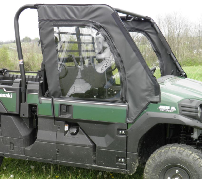 When the winter comes around, and the temperatures plummet to bitterly cold levels, it can become unbearable to use your Kawasaki to get the work done. That's why here at Side By Side Stuff, we carry 3 Star enclosures and enclosure components for Mule Pro-FX designed to protect you from unwanted exposure to the elements and other debris that you can experience while out in your machine. By adding these Soft Doors to your Mule Pro-DX, you're sure to do just that.