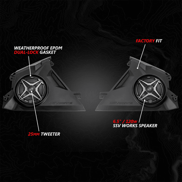 - (4) SSV A-Spec 6.5 inch, 120w powersports speakers