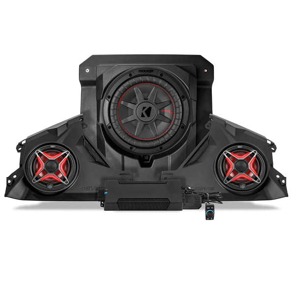 But this kit isn’t just about audio. It’s built for the elements: the components are weather-resistant, UV-resistant, and "trail-ready," meaning dust, water, or snow on the trail won’t kill your tunes. For extra flair, the stereo includes RGB capable speakers and controller, letting you sync your music with lighting, or even tie in rock lights or whips via extra outputs.