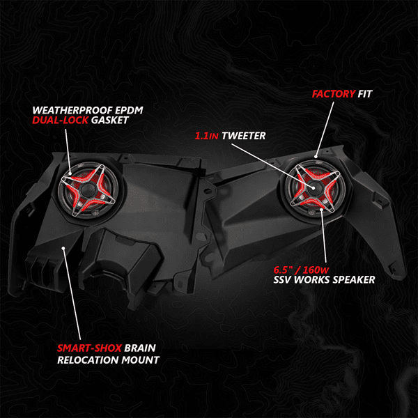 Enhance your Can Am Maverick X3 with the SSV Works Phase-3 V-Spec 3-Speaker System featuring JVC components, designed to deliver exceptional audio performance on the trail. This three-speaker system provides clear, balanced sound with rich lows and crisp highs, ensuring your favorite music and podcasts come through with impressive clarity even at high speeds. Its compact design fits seamlessly into your Maverick X3, giving you premium sound without taking up valuable space.