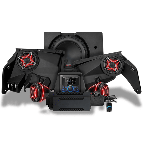 Elevate your Can Am Maverick X3 audio experience with the SSV Works Phase-4 V-Spec 5-Speaker System featuring JVC technology. This five speaker setup delivers dynamic, full-range sound that brings music to life on any trail. From deep, punchy bass to crisp mids and clear highs, the system ensures every note is heard with precision, transforming your ride into an immersive audio experience. Its design integrates seamlessly with the Maverick X3, providing premium sound without taking up extra space or compromising the vehicle’s interior layout.