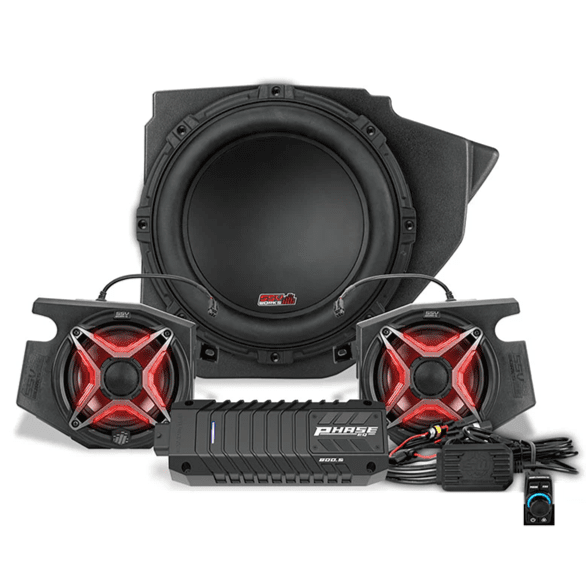 This plug-and-play 3-speaker kit brings premium, high-fidelity audio to your 2014-23 Polaris RZR XP 1000, XP Turbo, 900 with Ride Command. It installs easily with no cutting, crimping, or soldering, simply bolt down the pre-mounted speaker pods, connect the vehicle specific harness, and you’re ready to ride. The system combines front kick panel 6.5-inch speakers with a powerful 10-inch subwoofer and a dedicated amplifier, delivering clear mids, crisp highs, and deep, resonant bass for music, radio, or playlists on the trail.