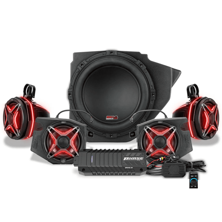The V-Spec 5-Speaker Plug-&-Play Kit turns your Polaris RZR into a full featured sound machine with powerful, high-fidelity audio built for the off road life. With custom-fit 6.5-inch front kick-panel and rear cage-mounted speakers, plus a 10-inch subwoofer and a dedicated amplifier, it delivers deep bass, rich mids, and crisp highs, ideal whether you’re blasting tunes on the dunes or bumping music at the campsite. Because everything comes pre-installed and uses a plug-and-play harness, installation is effortless: just bolt in the pods, connect the wiring, and you’re ready to ride.