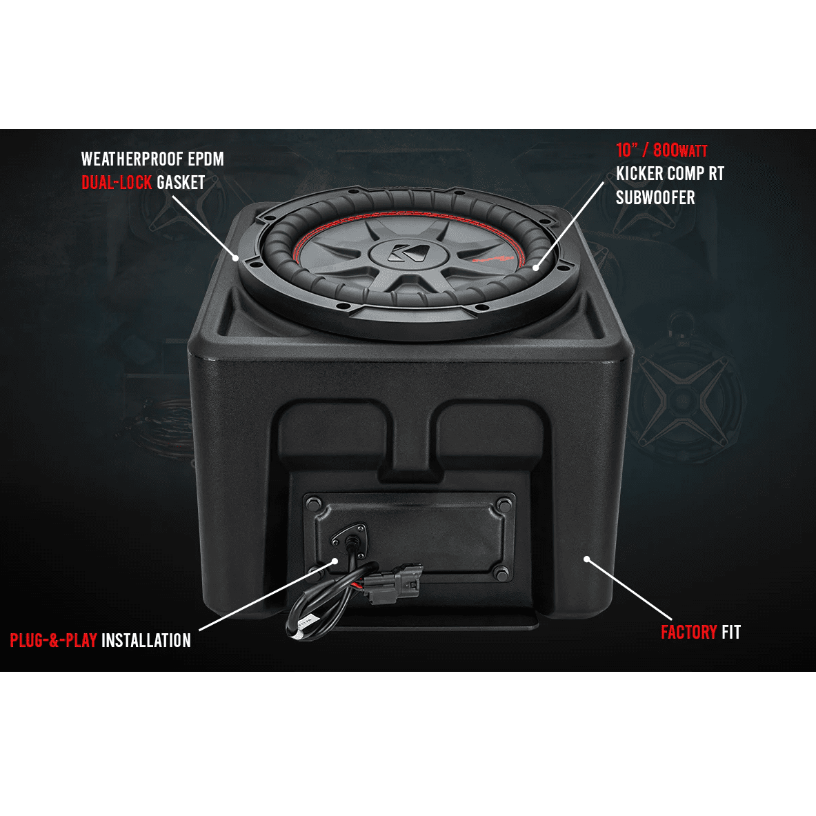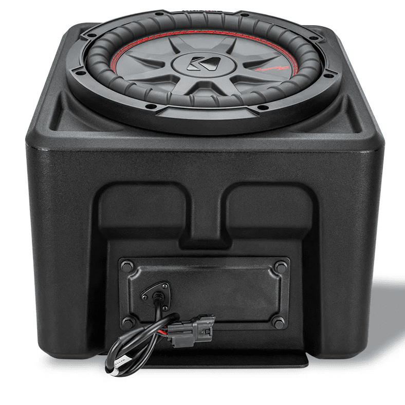 - The images above show the product with a Kicker Comp RT Subwoofer installed. The kit does not come standard with a sub.