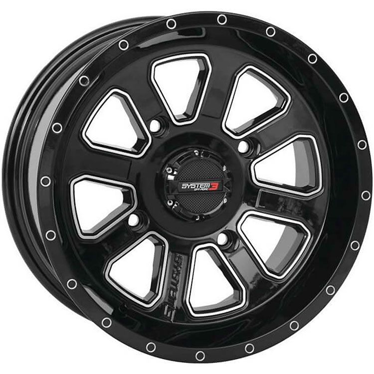 Your ATV or UTV craves the System 3 ST-4 Gloss Black and Machined Wheel (14x7, 4/137)