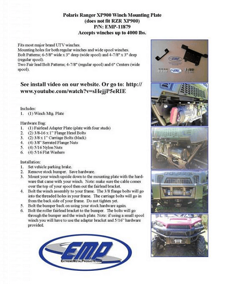EMP uses cutting-edge technology to form the UTV winch mount to ensure a precise fitment per your machine application. It's available with multiple bolt patterns for both the winch and the fairlead as well. The powder-coated finish increases durability and is chip, fade, scratch, and wear-resistant. There are a ton of benefits to adding an aftermarket winch to your buggy, making the Ranger XP 900 front winch mount a must-have!
